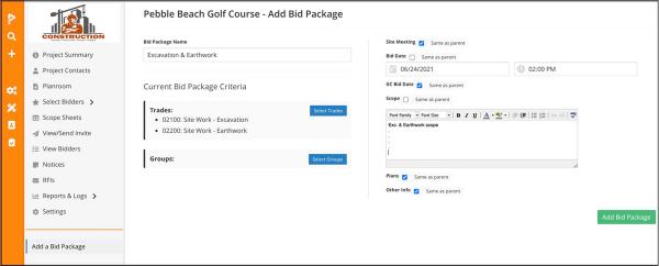 Bid Packages provide a structured way to segment a project into manageable, trade-specific chunks. Construction bidding software enables teams to easily build, label, and send these Bid Packages, ensuring each subcontractor receives only the relevant information for their scope.